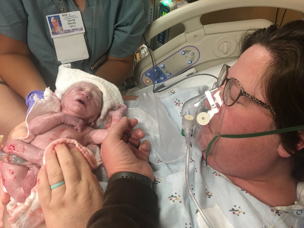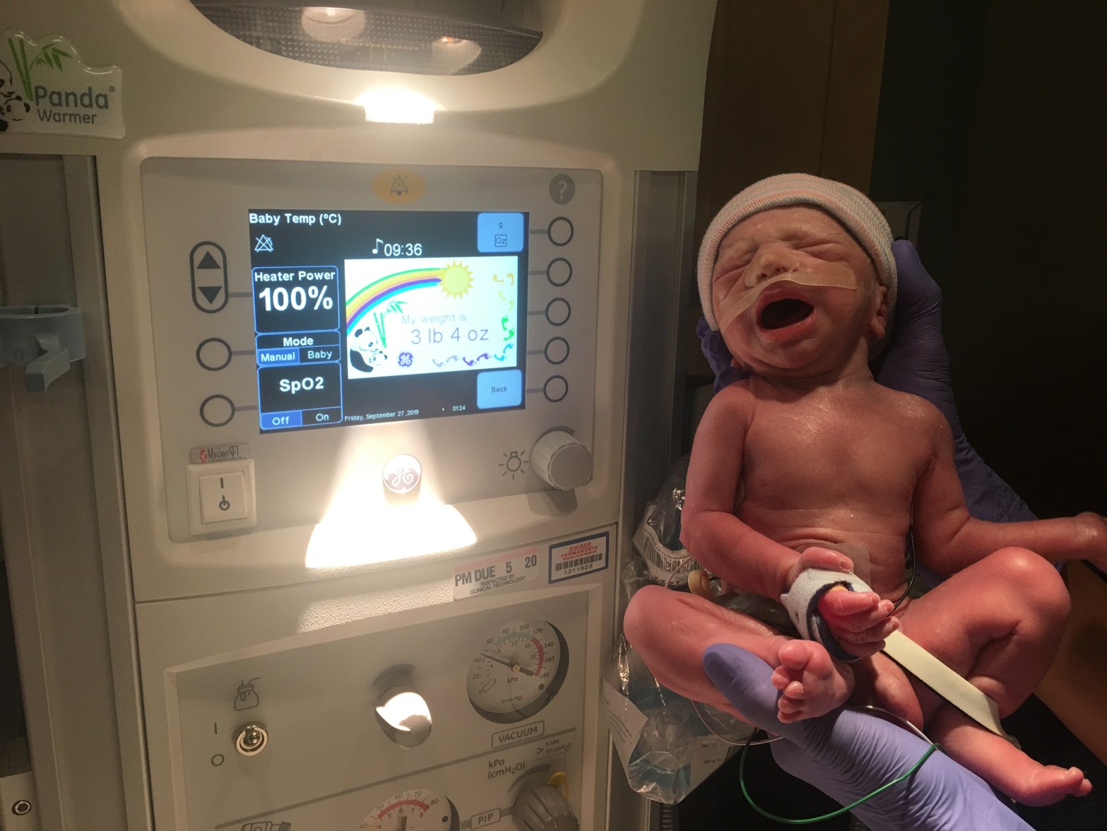 The doctor purposely slowed down my labor as she was afraid Ezra’s heart couldn’t take the fast paced delivery. Ezra was weighing in around two pounds based on their measurements and the NICU doctor’s were standing by and preparing us for a long stay.